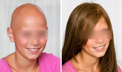 A cranial prosthesis is a hair system designed specifically for those suffering from hair loss due to medical conditions or treatments, such as alopecia areata, alopecia totalis, trichotillomania, or chemotherapy. Unlike an off-the-shelf wig, each prosthesis is custom made to fit. Precise head measurements are taken and real human hair is selected from a large array of colors and textures. The hair is hand-tied onto a base material that resembles scalp.