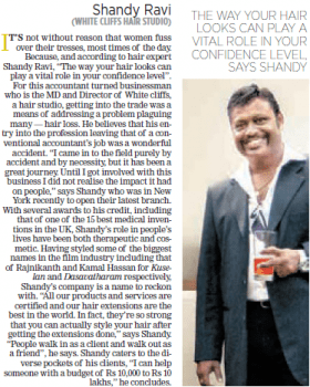 IT’S not without reason that women fuss over their tresses, most times of the day. Because, and according to hair expert Shandy Ravi, “The way your hair looks can play a vital role in your confidence level”. For this accountant turned businessman who is the MD and Director of White cliffs, a hair studio, getting into the trade was a means of addressing a problem plaguing many — hair loss. He believes that his entry into the profession leaving that of a conventional accountant’s job was a wonderful accident. “I came in to the field purely by accident and by necessity, but it has been a great journey. Until I got involved with this business I did not realise the impact it had on people,” says Shandy who was in New York recently to open their latest branch.